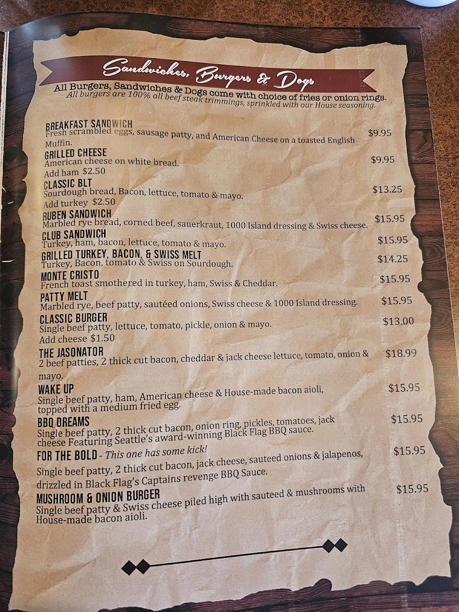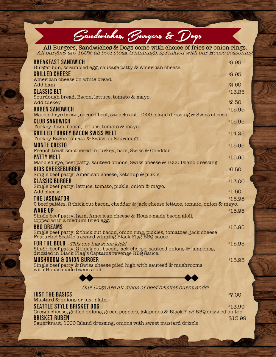 Food Menu - Sandwiches and Burgers